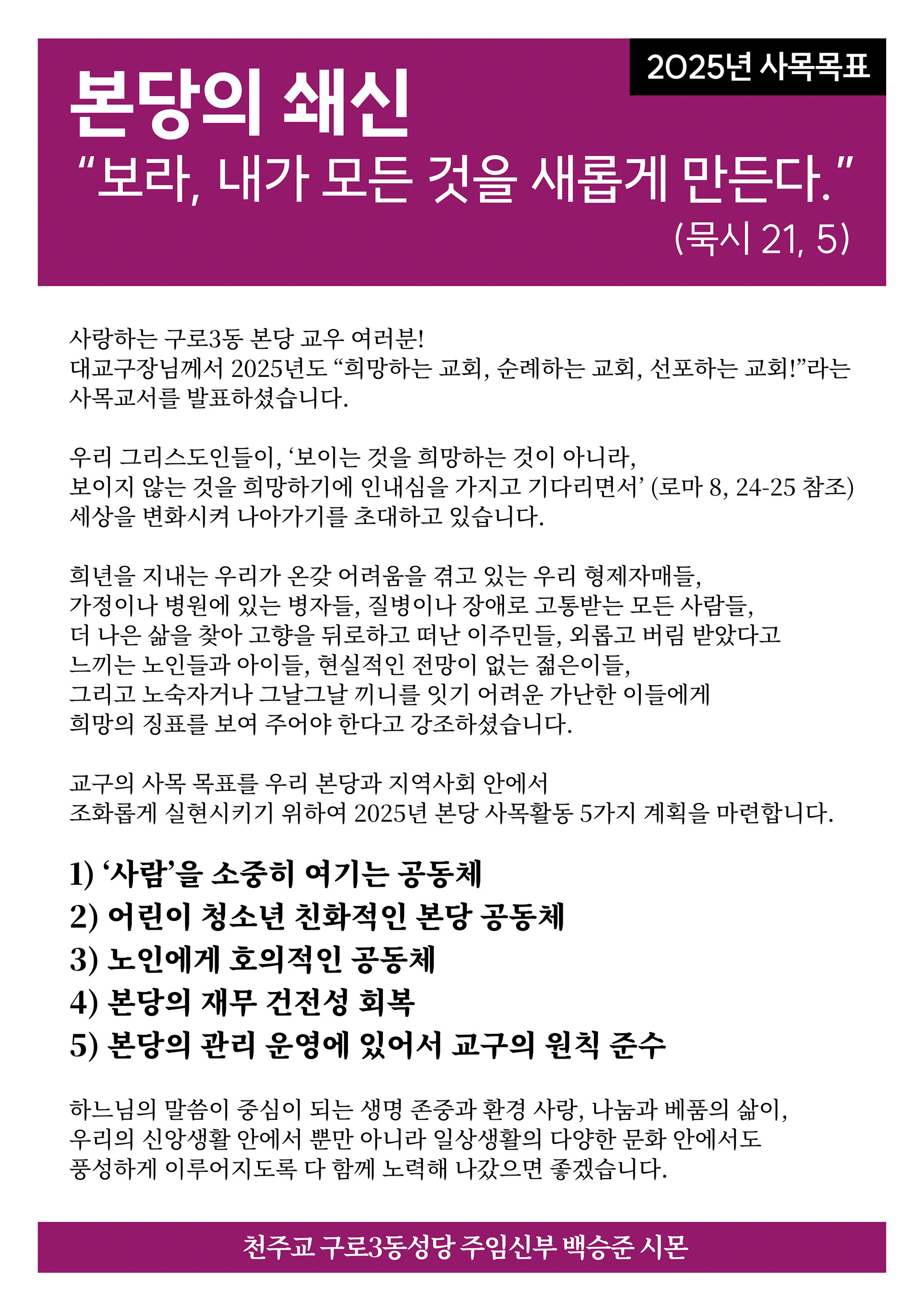구로3동성당 2025 홍보물
